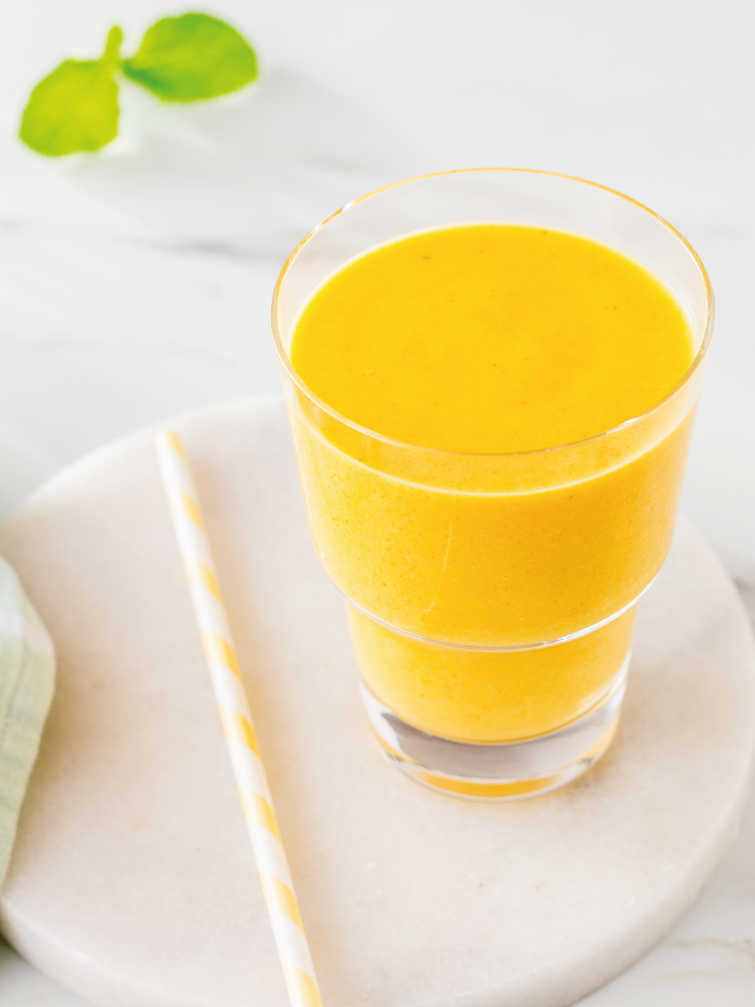 Koktajl brzoskwinia, mango, banan ze skyrem i odżywką białkową