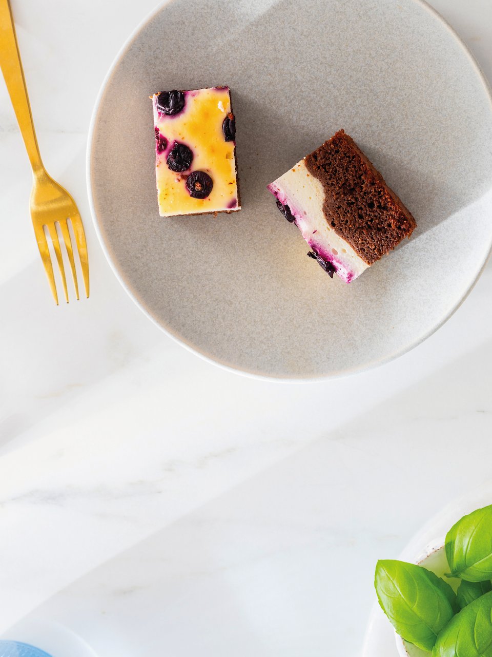 Sernik z czarną porzeczką na czekoladowym spodzie brownie
